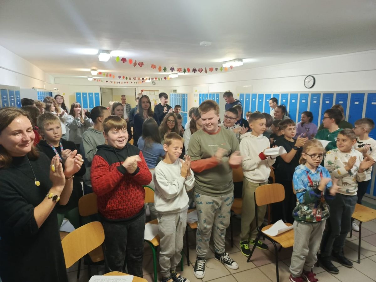Społeczność szkolna gromkimi brawami podziękowała pani Magdzie za zaangażowanie, sumienną pracę i serce, które codziennie okazuje swoim uczniom.