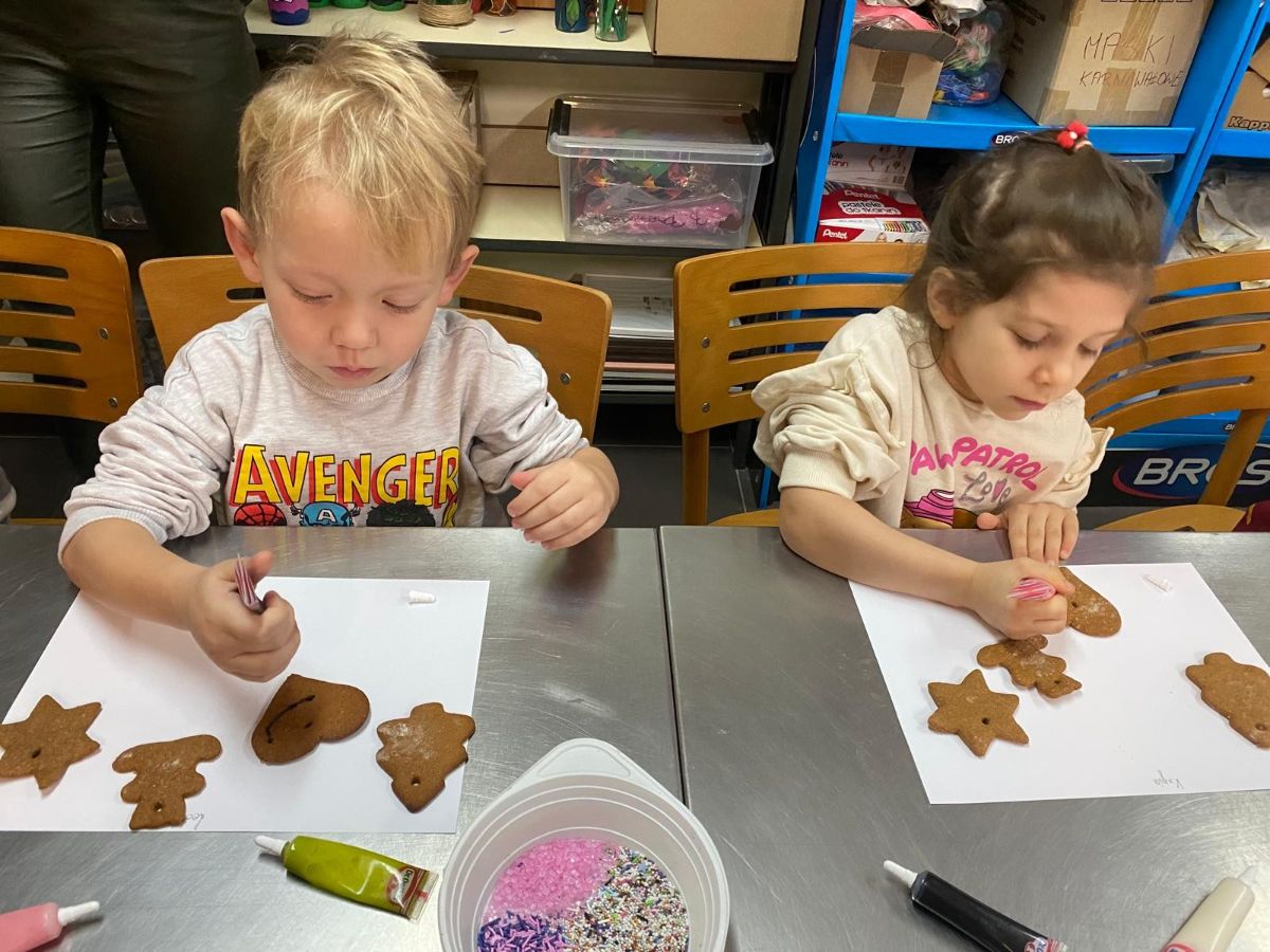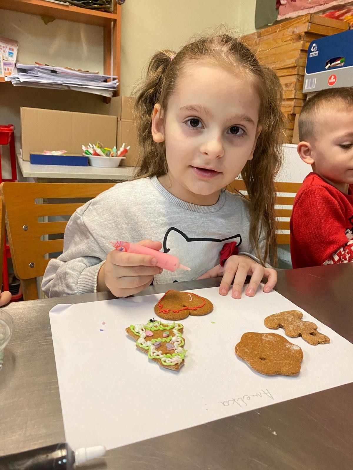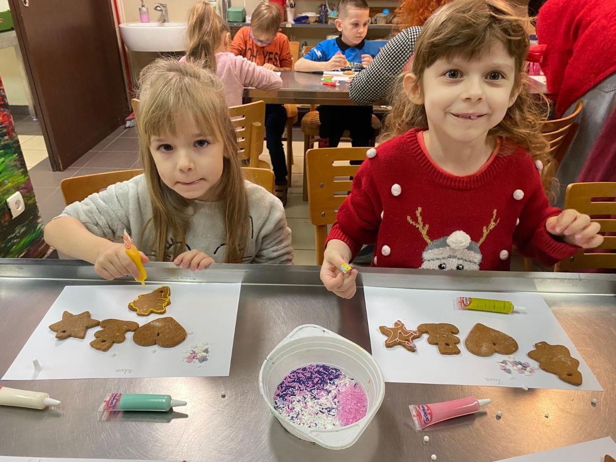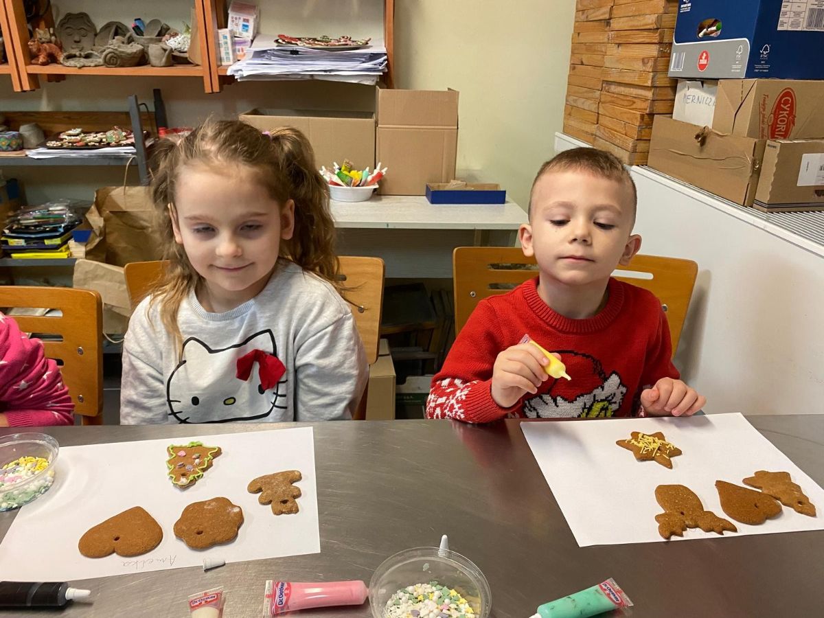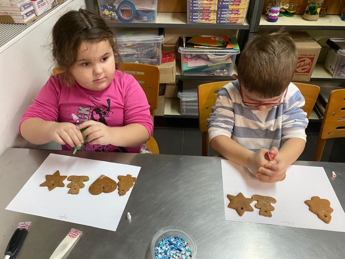 W dniu 16 grudnia dzieci z oddziałów przedszkolnych uczestniczyły w warsztatach zdobienia pierniczków bożonarodzeniowych.