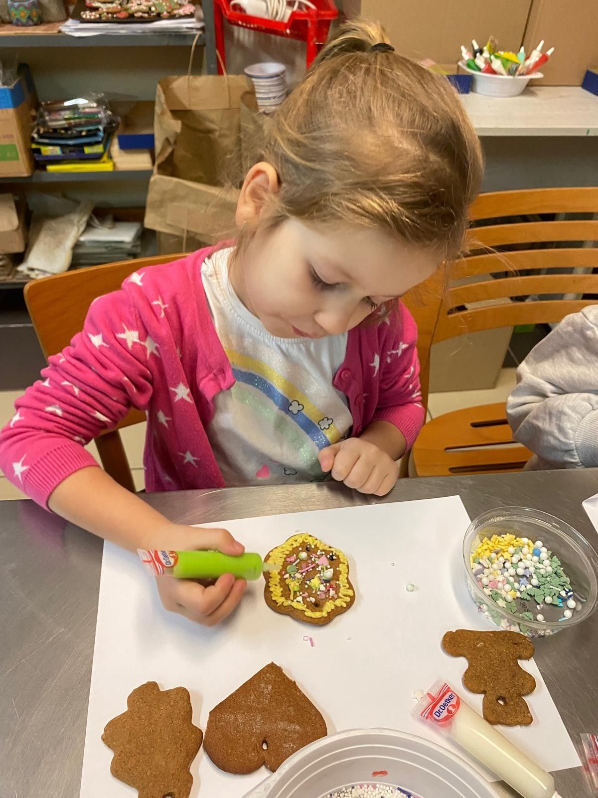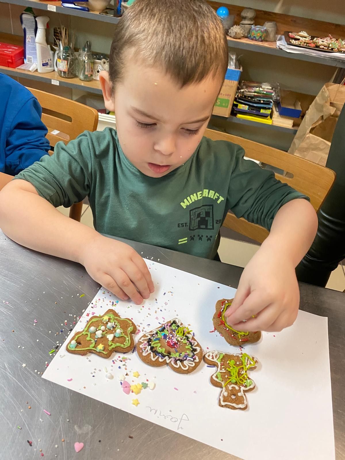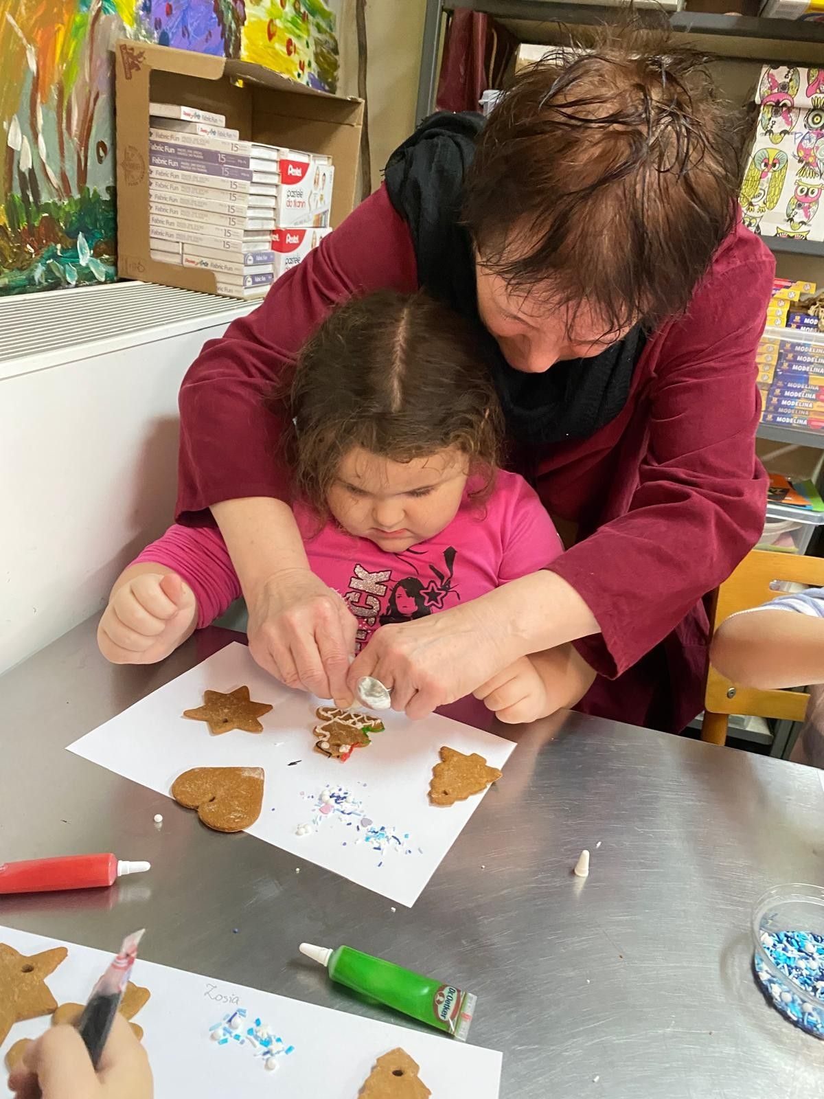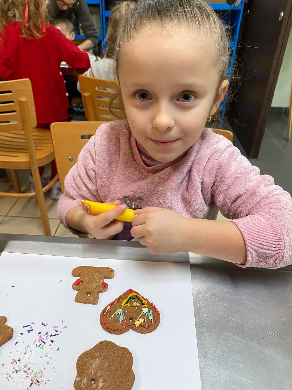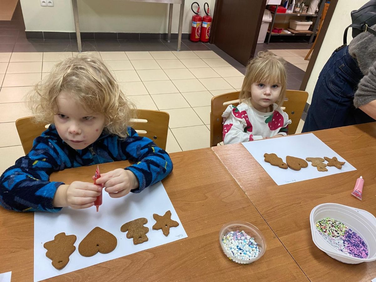 W dniu 16 grudnia dzieci z oddziałów przedszkolnych uczestniczyły w warsztatach zdobienia pierniczków bożonarodzeniowych.