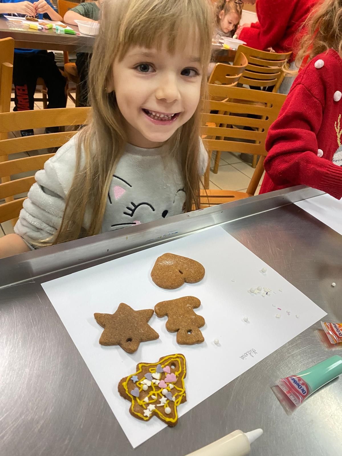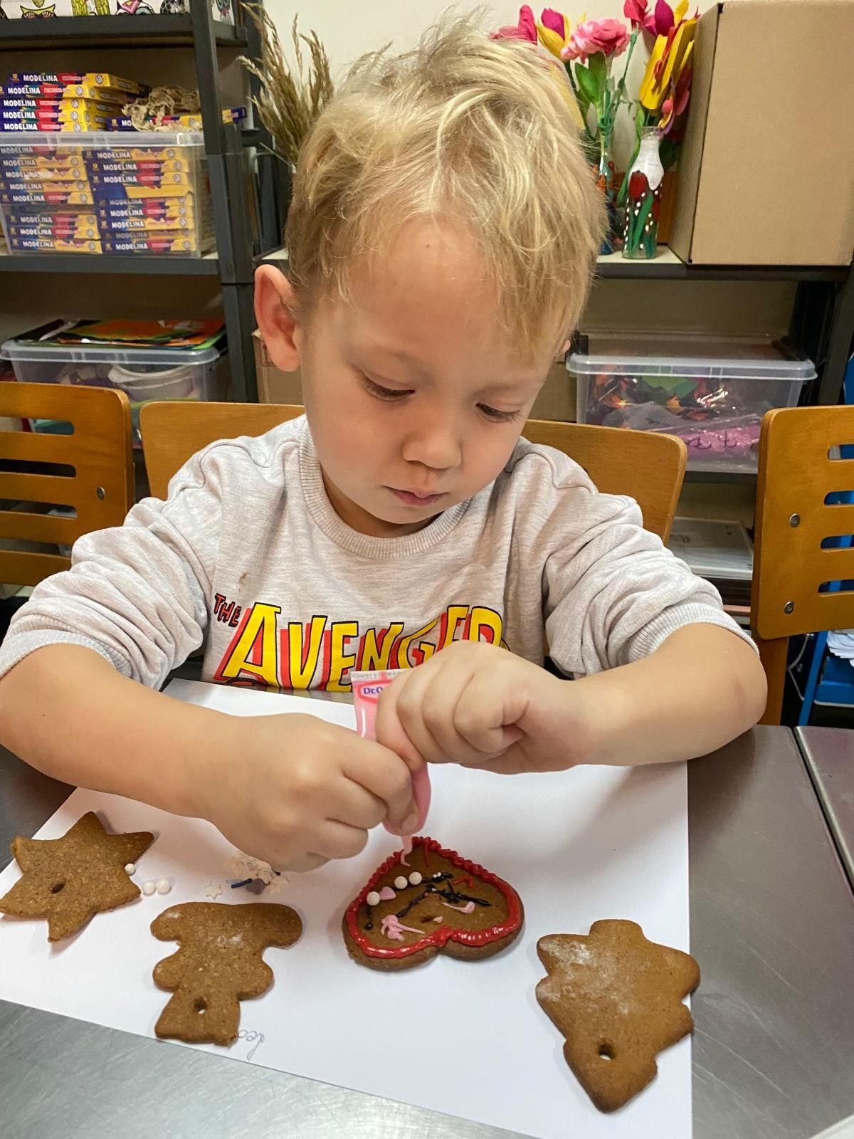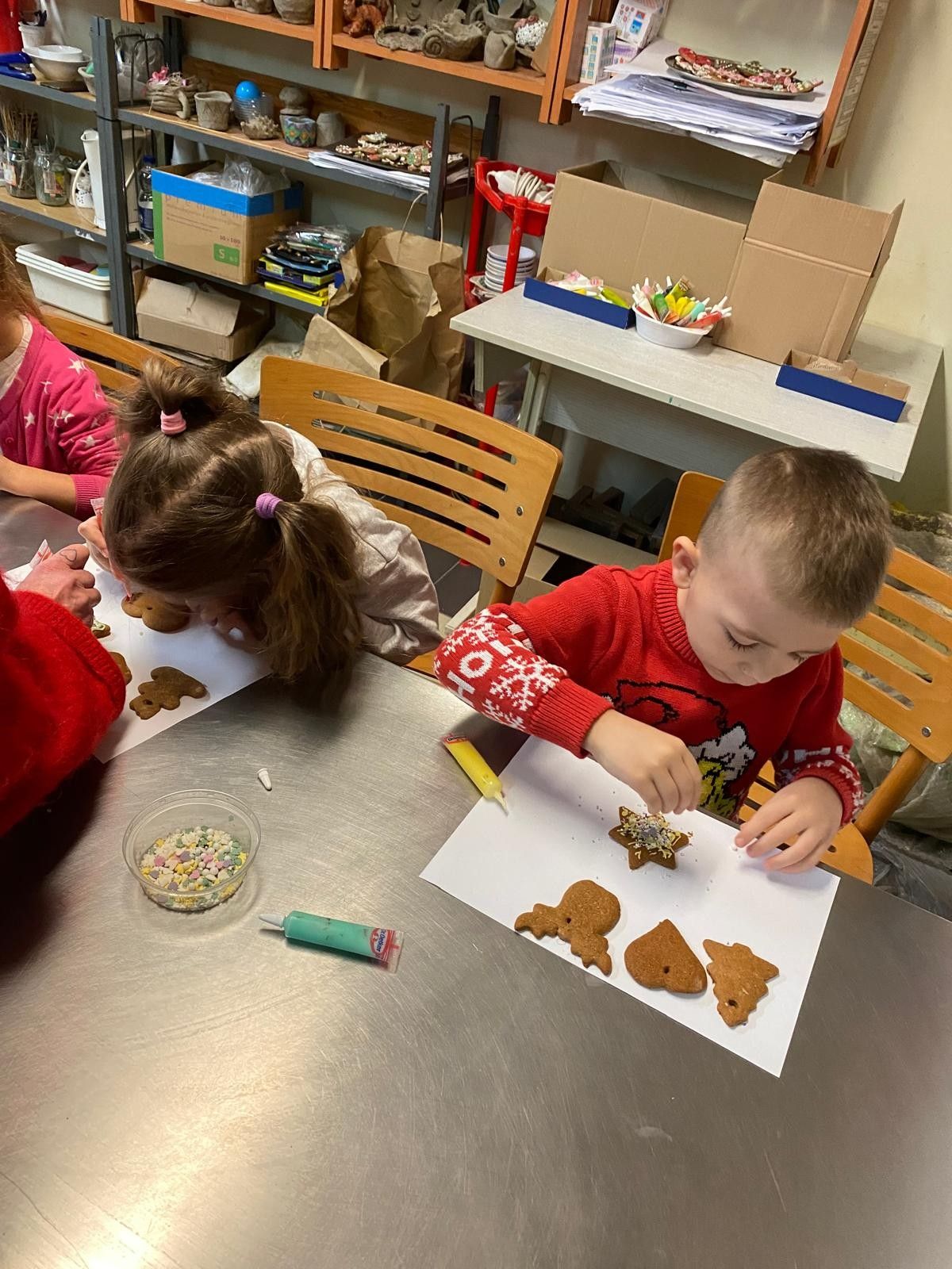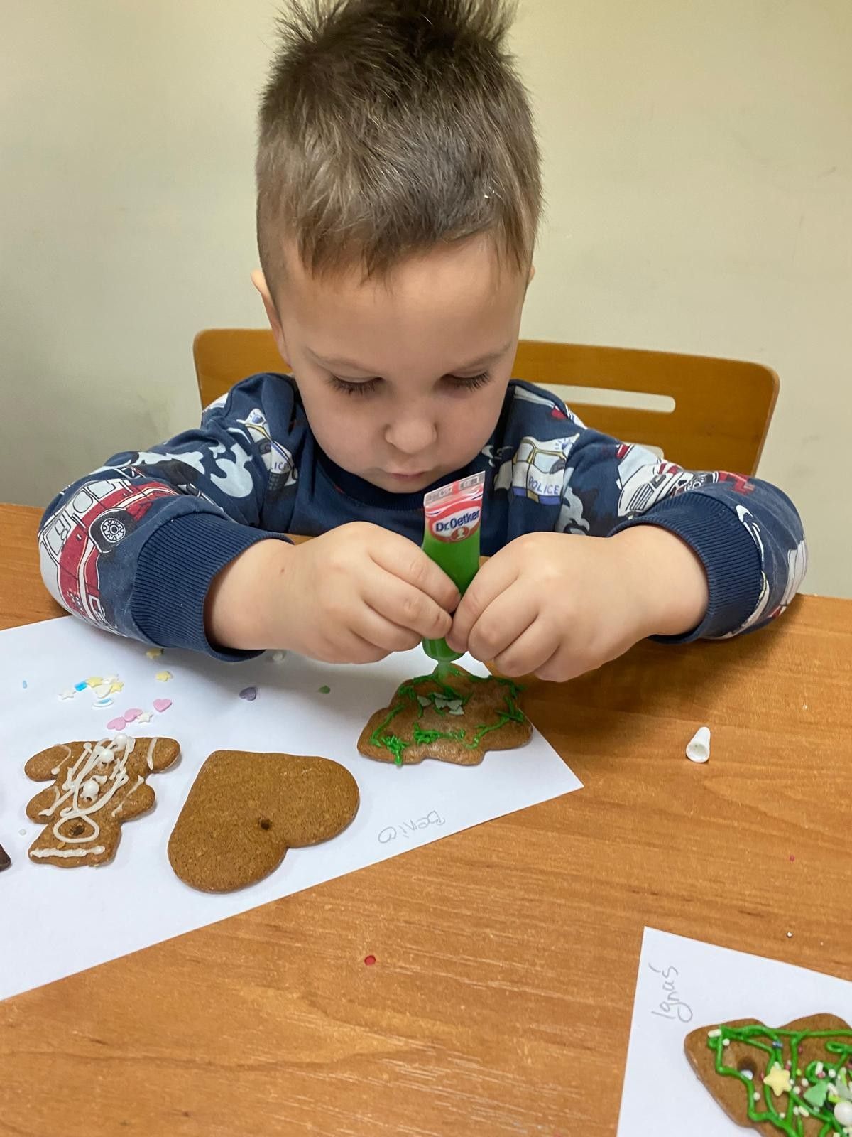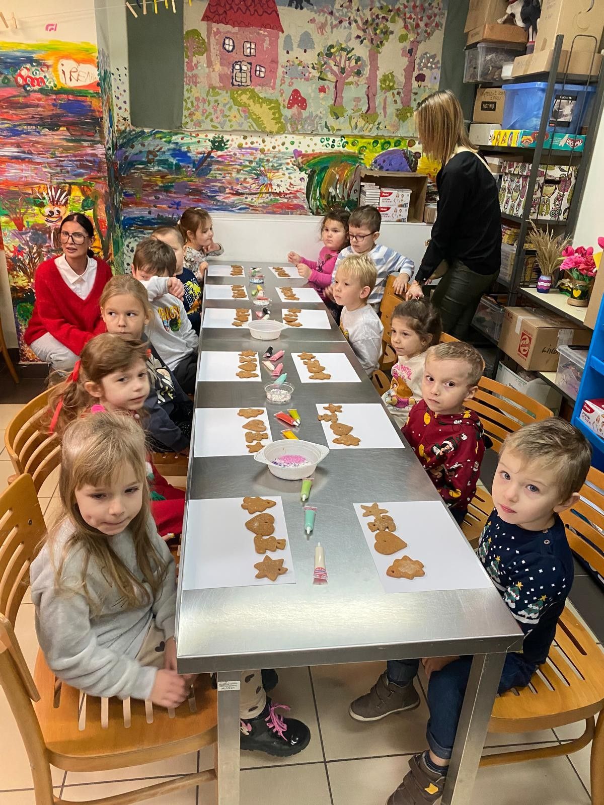 W dniu 16 grudnia dzieci z oddziałów przedszkolnych uczestniczyły w warsztatach zdobienia pierniczków bożonarodzeniowych.