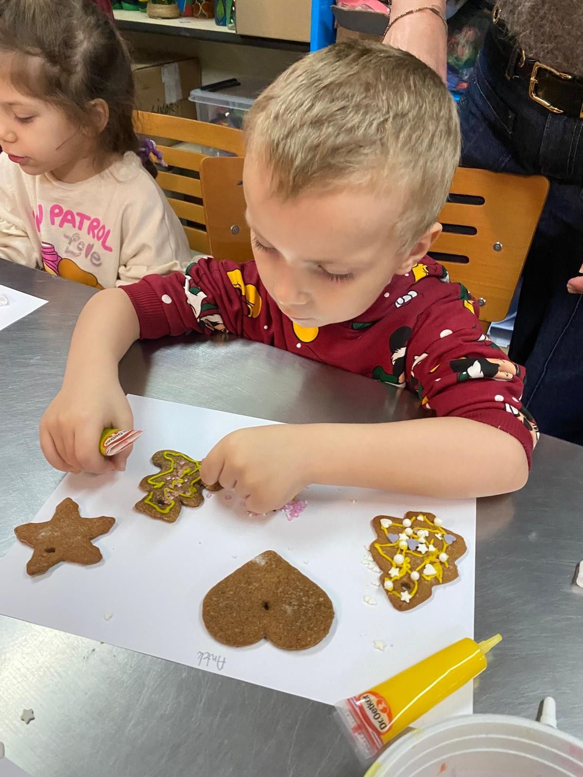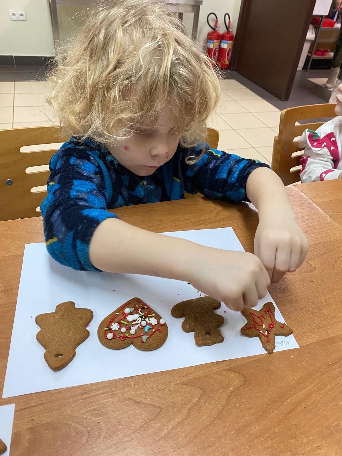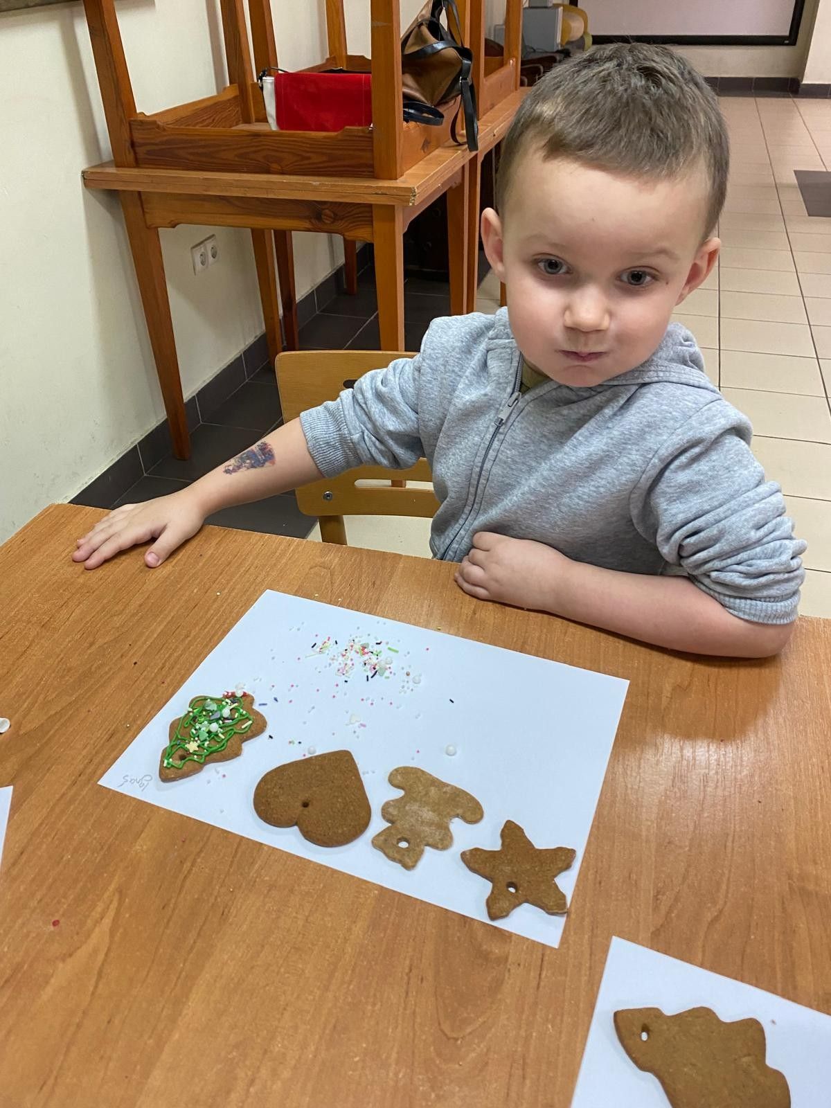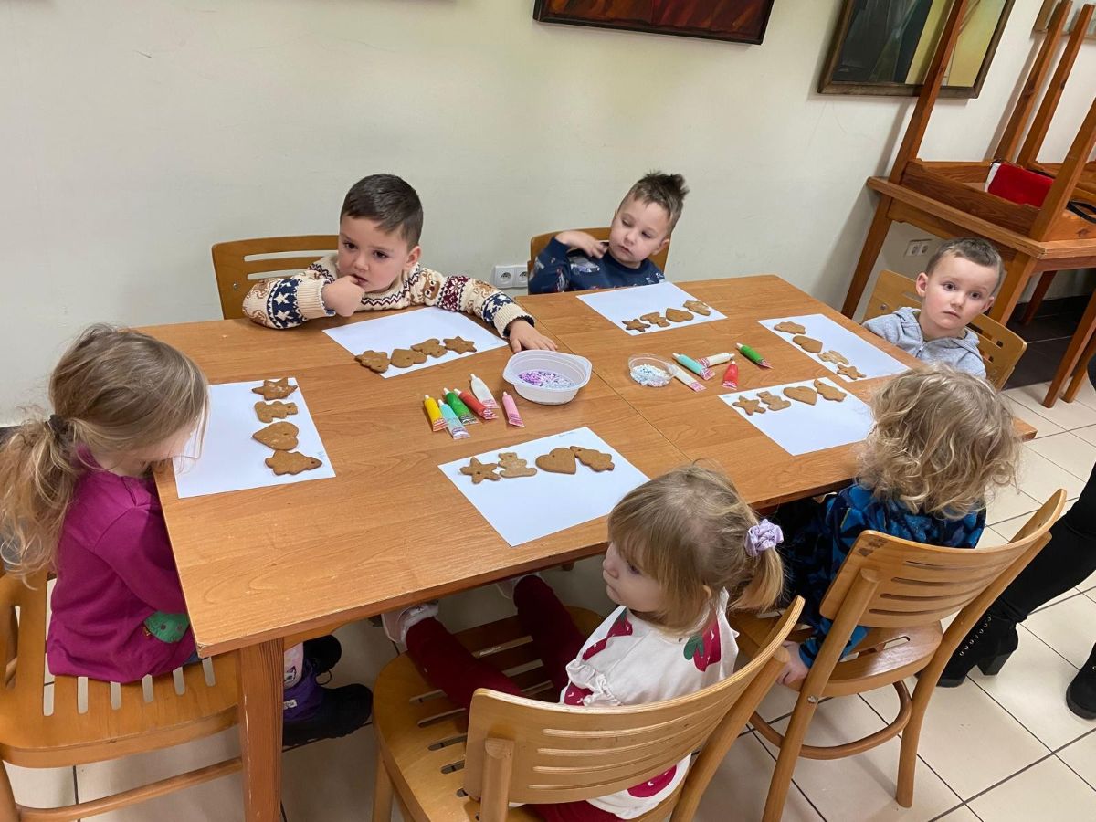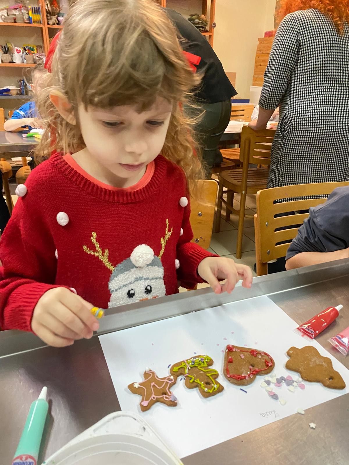 W dniu 16 grudnia dzieci z oddziałów przedszkolnych uczestniczyły w warsztatach zdobienia pierniczków bożonarodzeniowych.