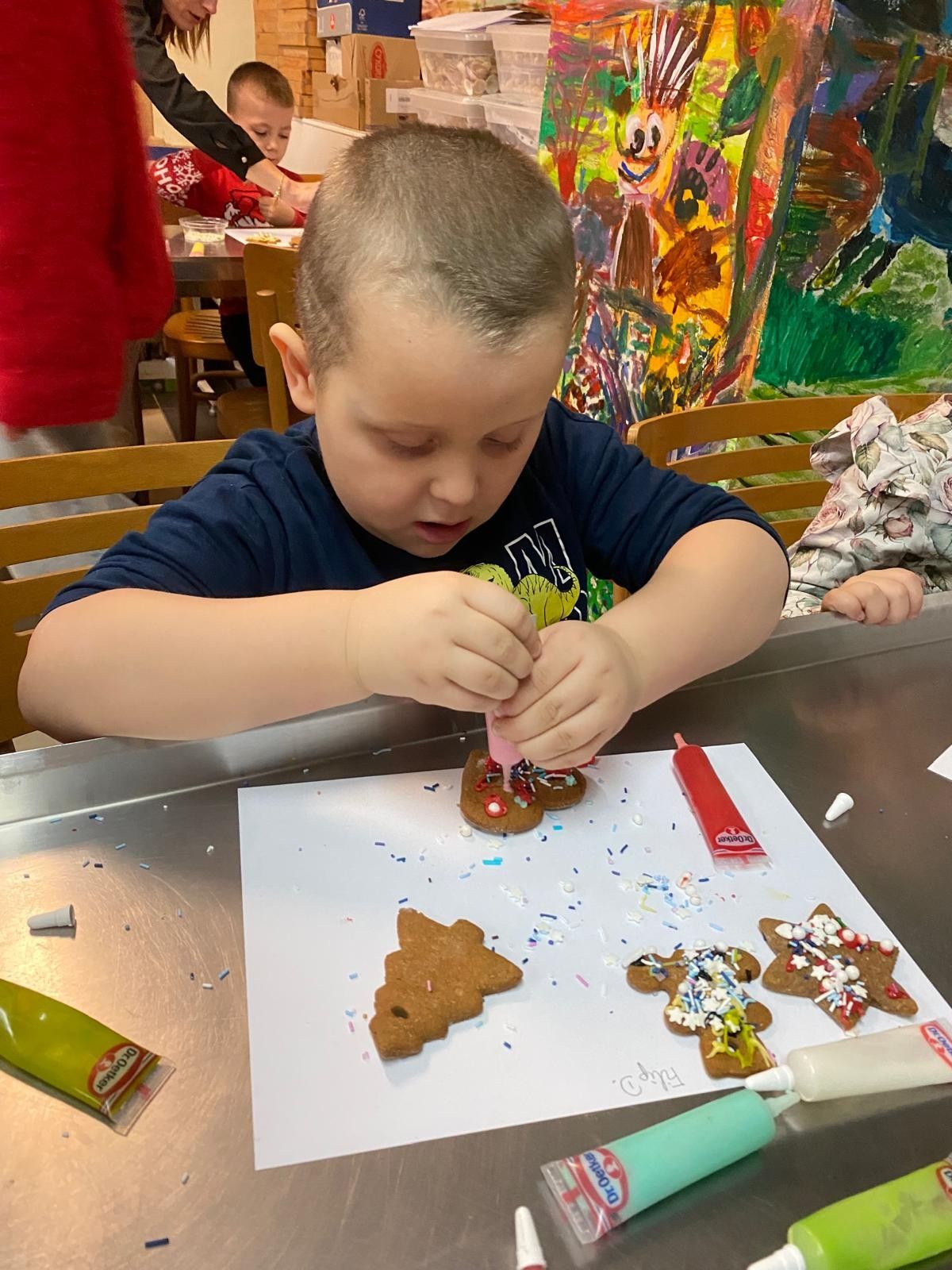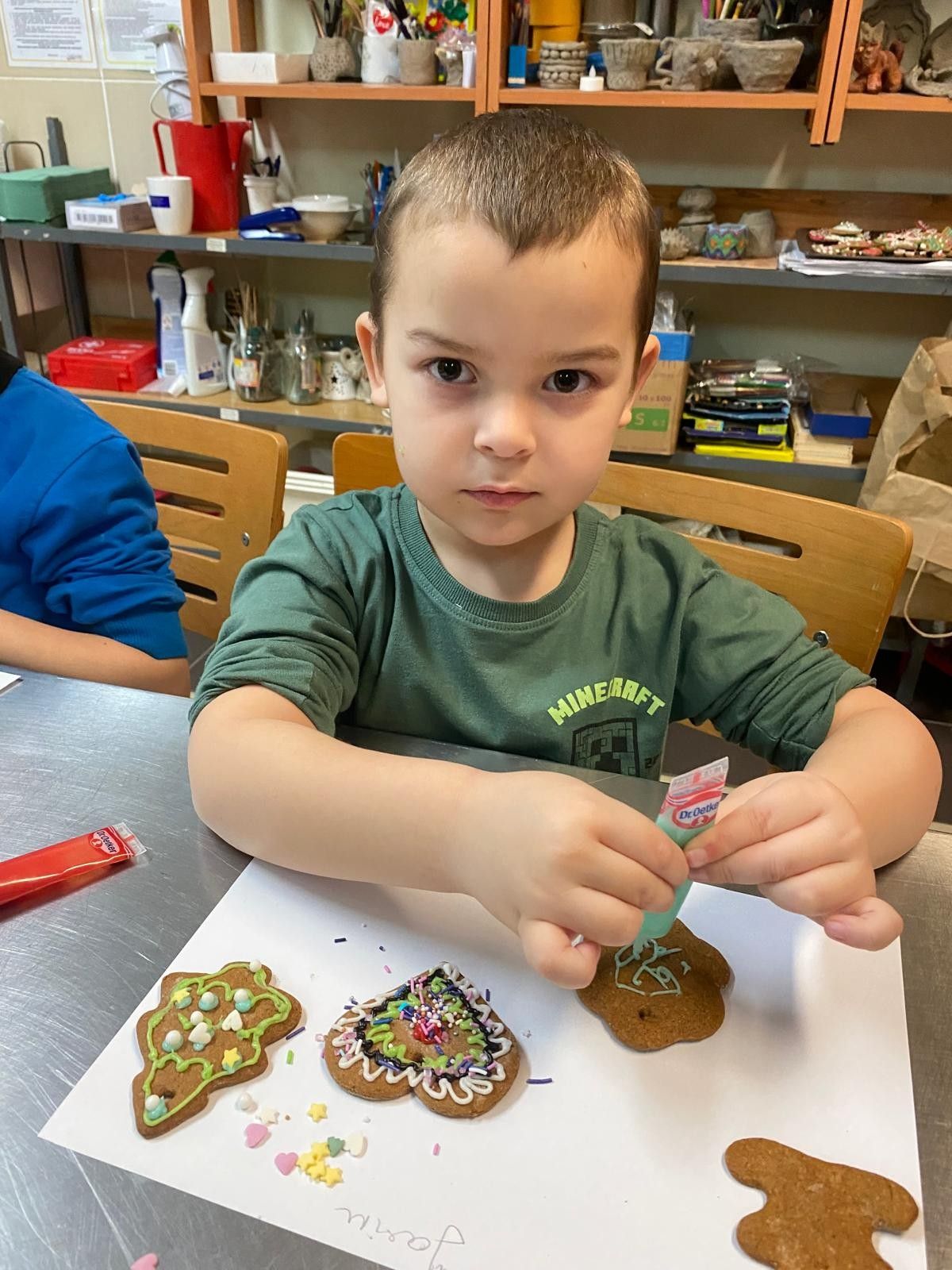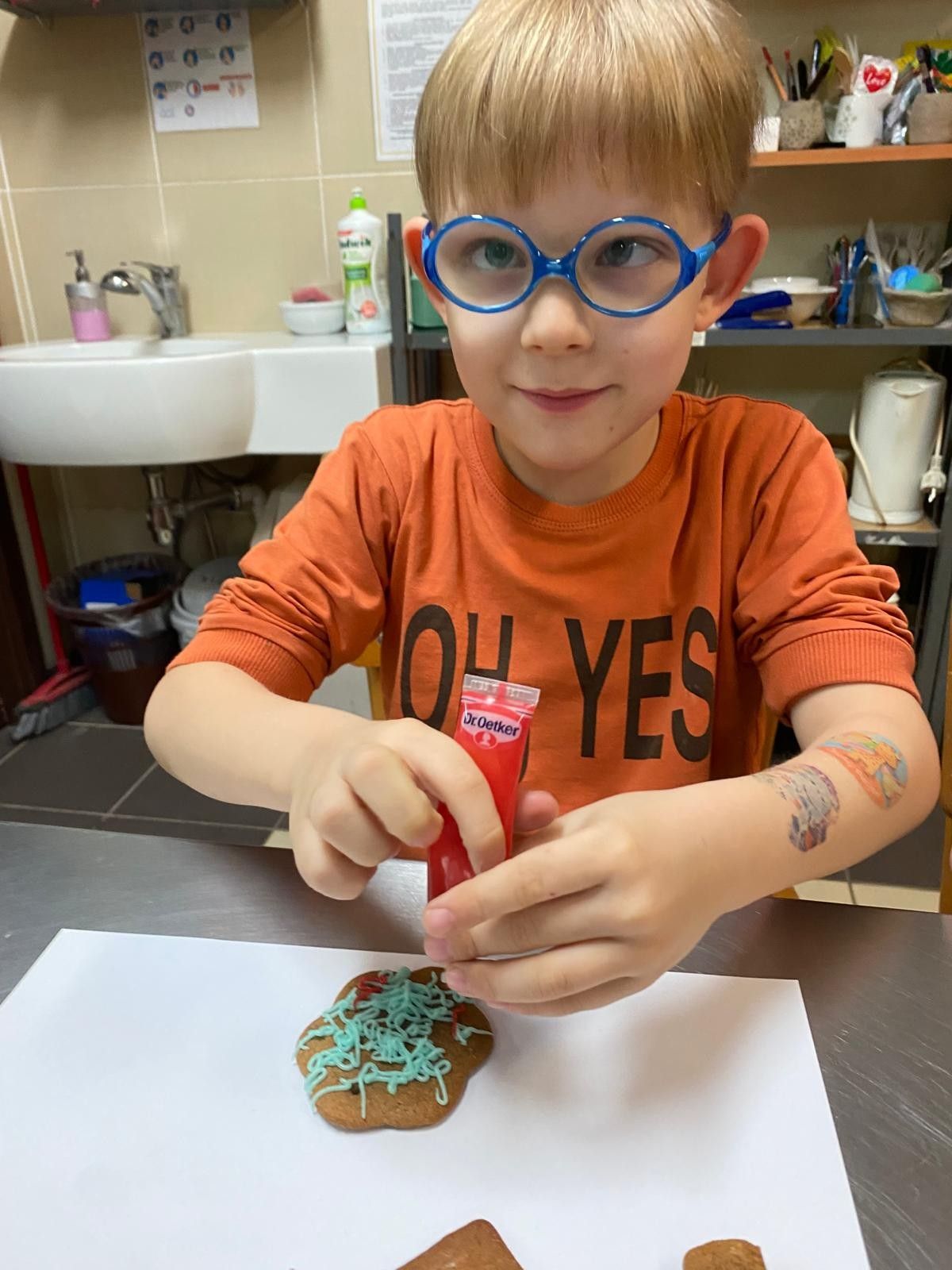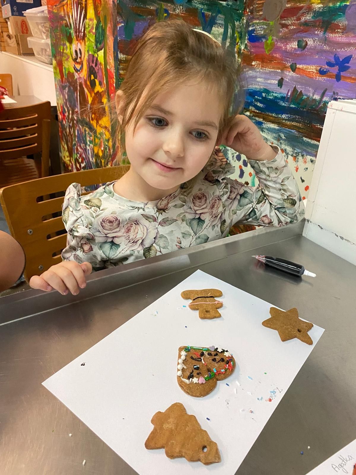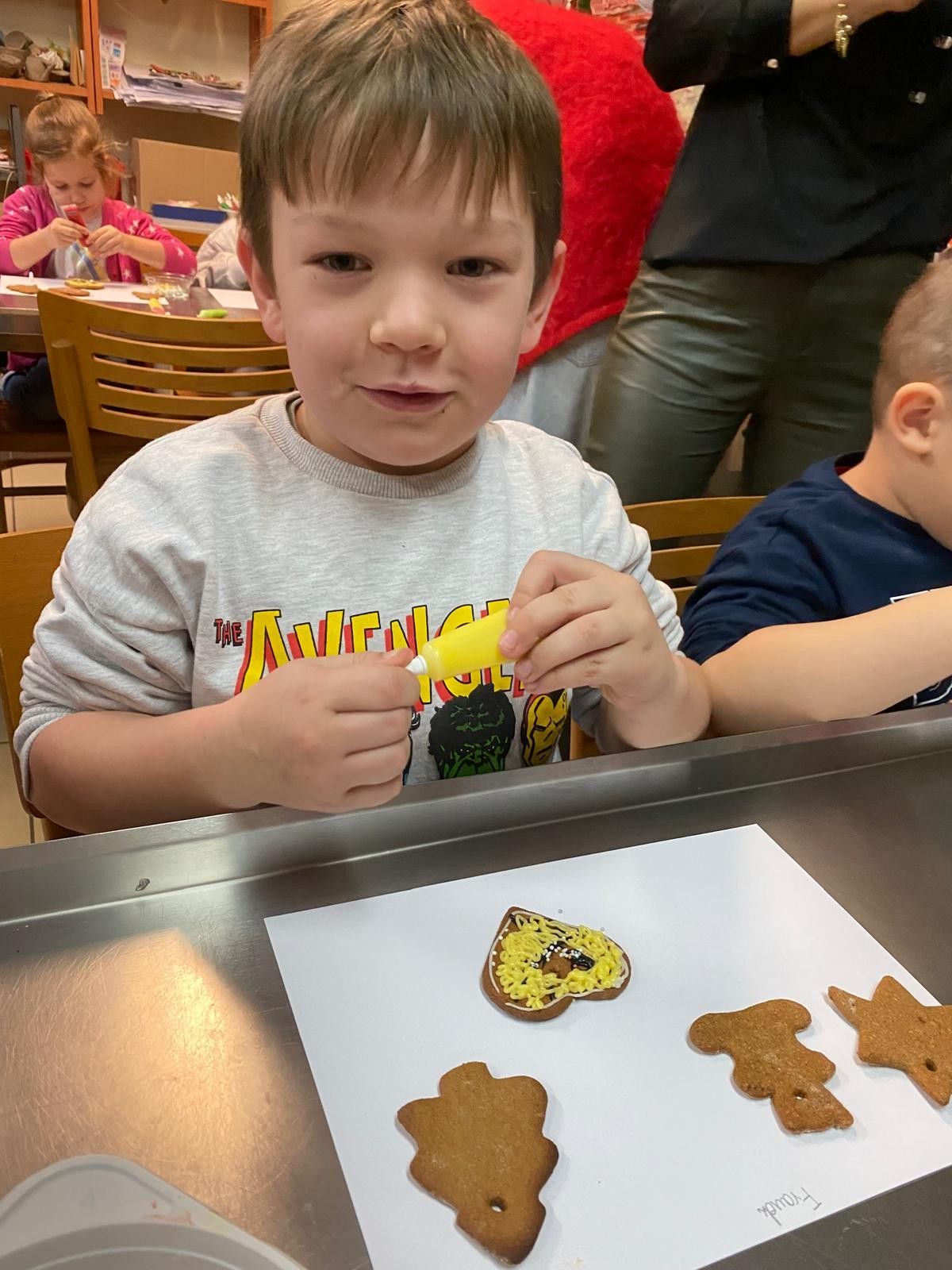 W dniu 16 grudnia dzieci z oddziałów przedszkolnych uczestniczyły w warsztatach zdobienia pierniczków bożonarodzeniowych.