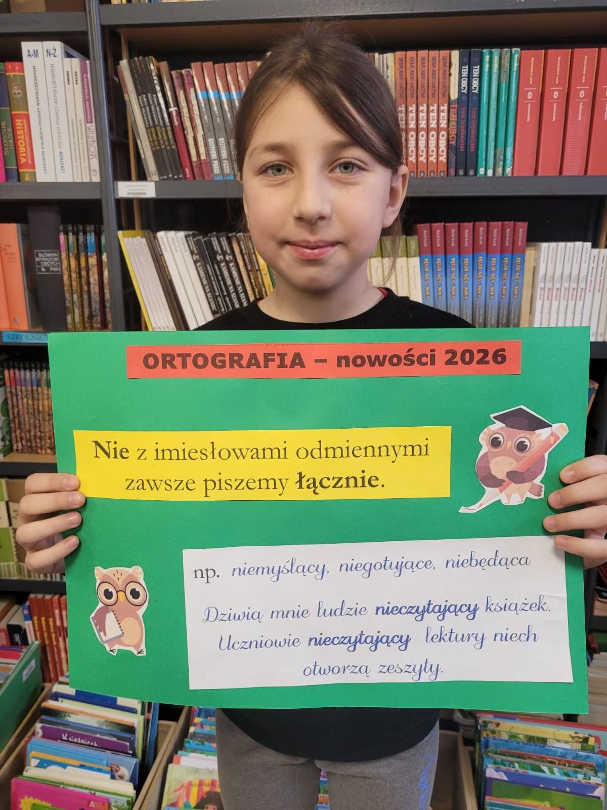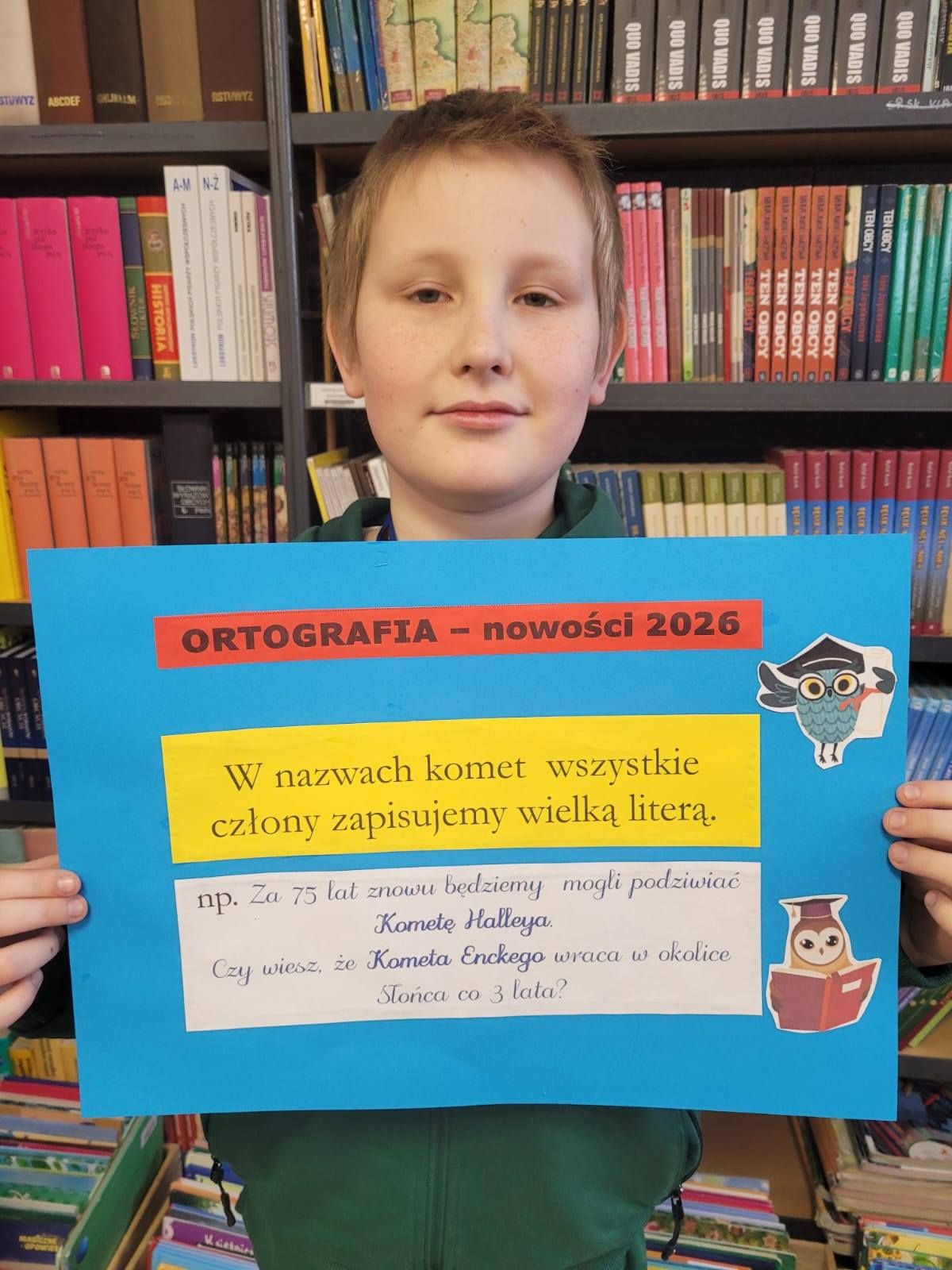 Dziś wszyscy przystąpili do konkursowych zmagań. Nasze polonistki przeprowadziły konkurs pt. „Ortografia – nowości 2026”. Uczniowie mieli okazję wykazać się znajomością nowych zasad, rozwiązując test konkursowy.