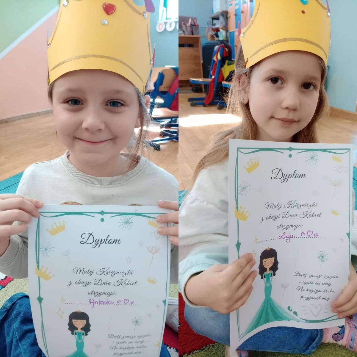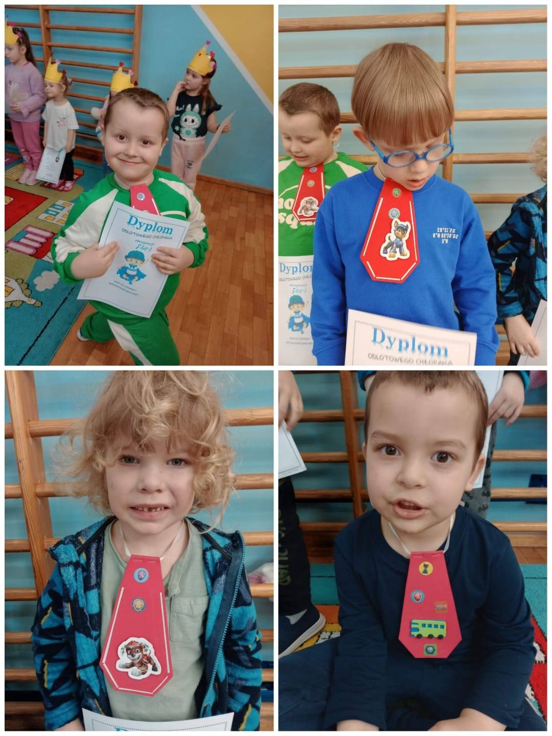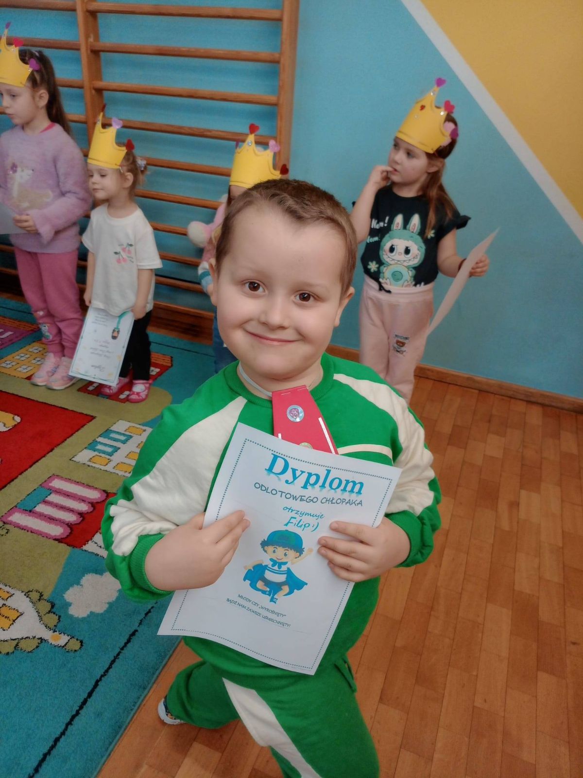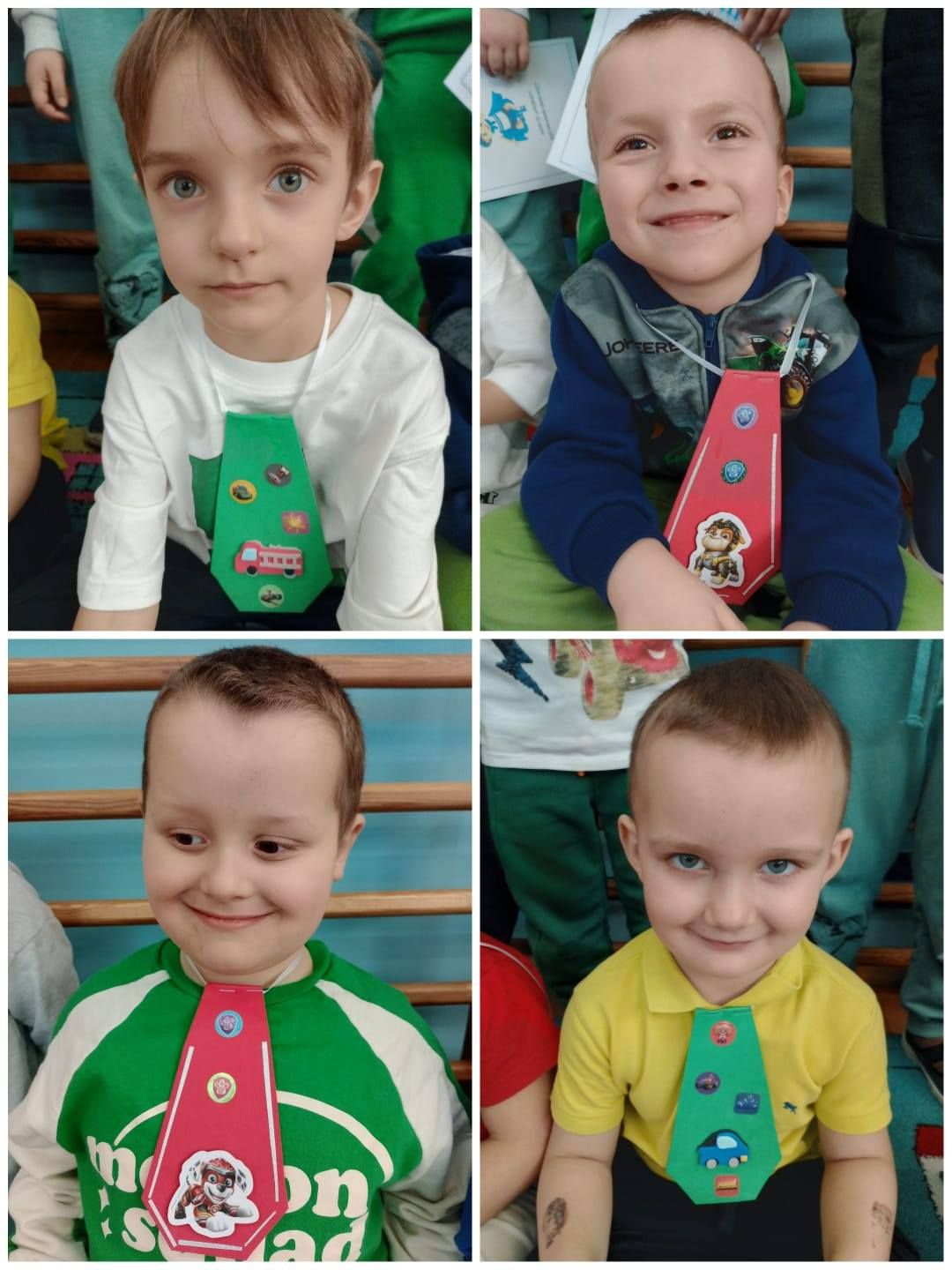 Chłopcy przygotowali dla dziewczynek piękne korony oraz pamiątkowe dyplomy, dzięki którym każda dziewczynka mogła poczuć się jak prawdziwa księżniczka. Z kolei dziewczynki obdarowały chłopców eleganckimi krawatami i dyplomami, podkreślając, jak ważni są mali dżentelmeni w naszej grupie.
