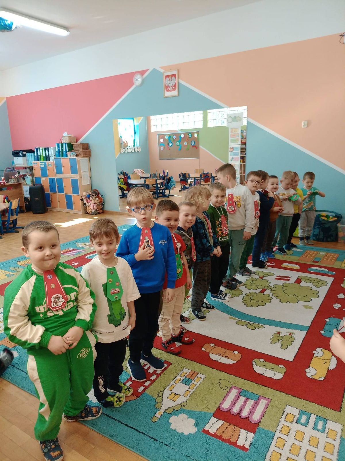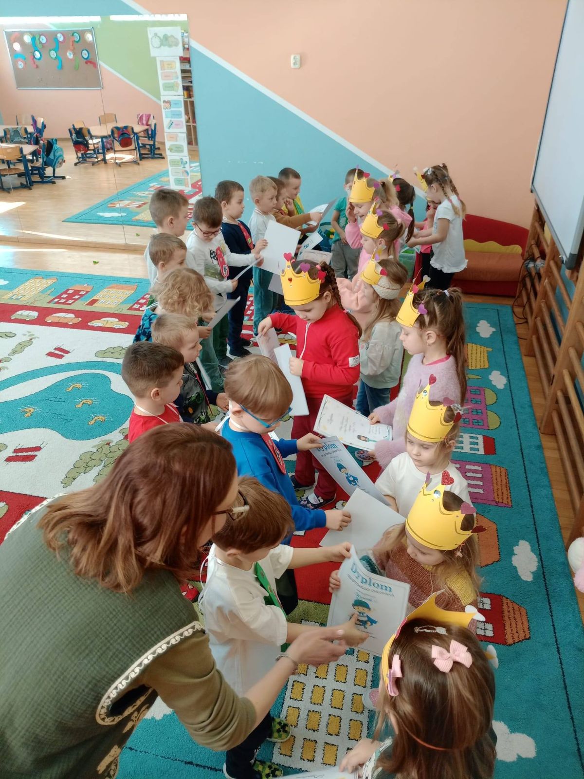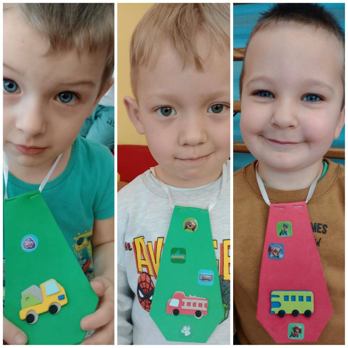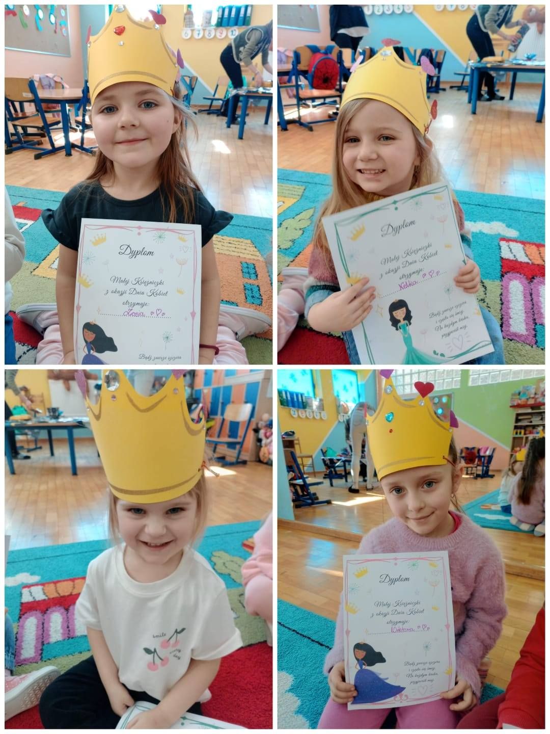 Chłopcy przygotowali dla dziewczynek piękne korony oraz pamiątkowe dyplomy, dzięki którym każda dziewczynka mogła poczuć się jak prawdziwa księżniczka. Z kolei dziewczynki obdarowały chłopców eleganckimi krawatami i dyplomami, podkreślając, jak ważni są mali dżentelmeni w naszej grupie.