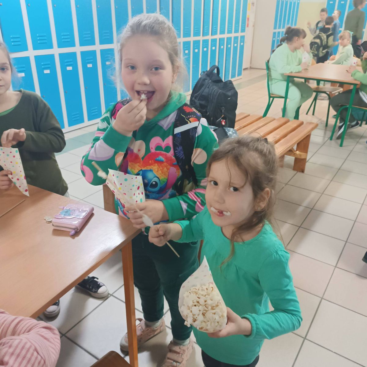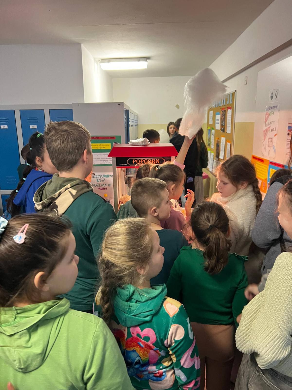 W kawiarence „U LEPRECHAUNA” Samorzad Uczniowski serwował popcorn i watę cukrową. Dochód ze sprzedaży zasili zbiórkę na zakup defibrylatora.