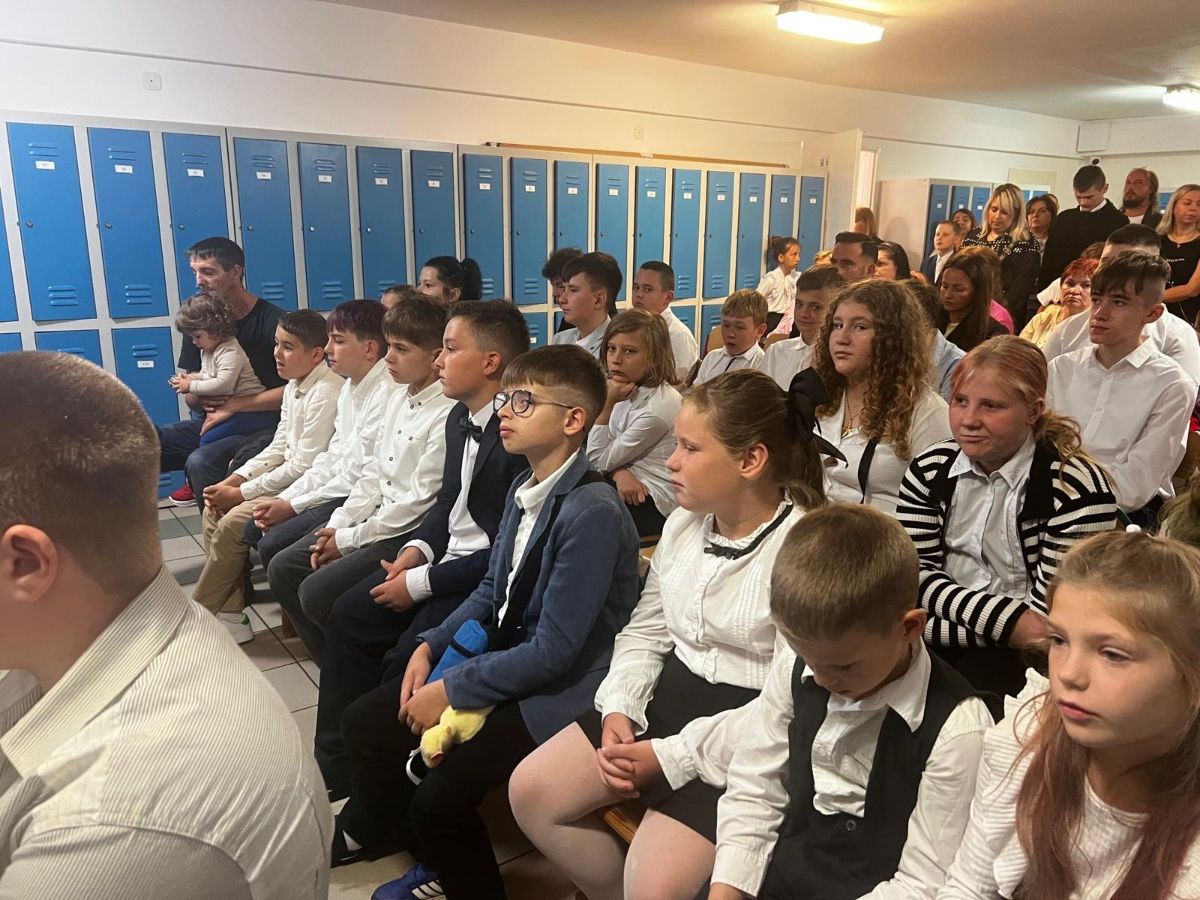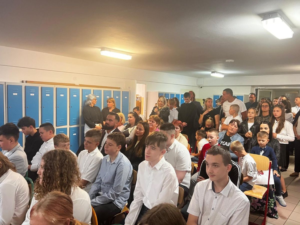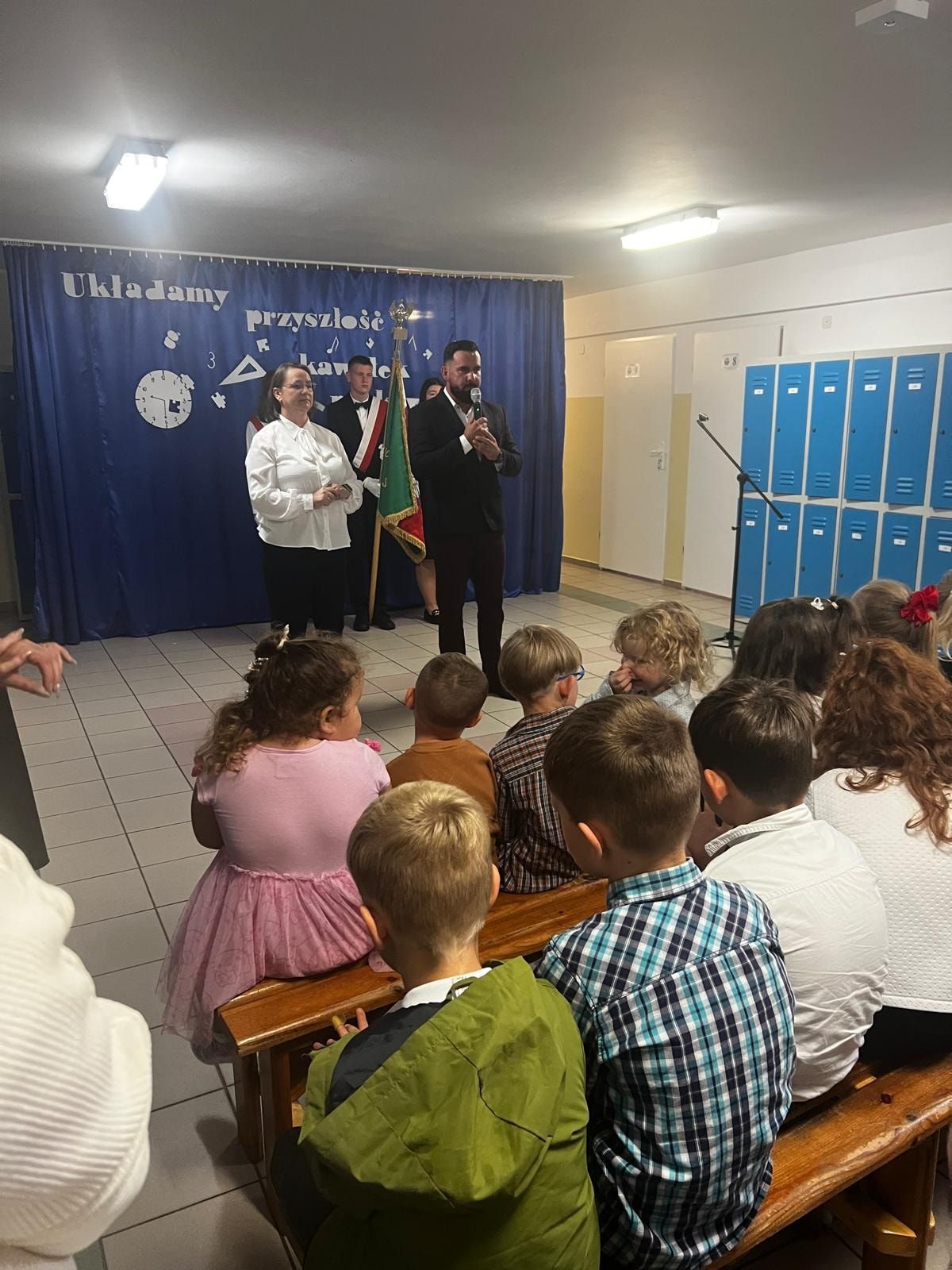 Dyrektor Szkoły Agnieszka Fir powitała serdecznie wszystkich uczniów, rodziców, grono pedagogiczne, pracowników szkoły i przybyłych gości: Wójta Gminy Potęgowo Dawida Litwina oraz Kierownika Referatu Oświaty Monikę Dziecielską.