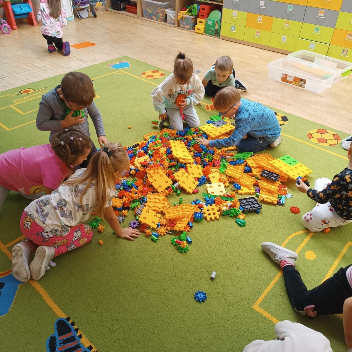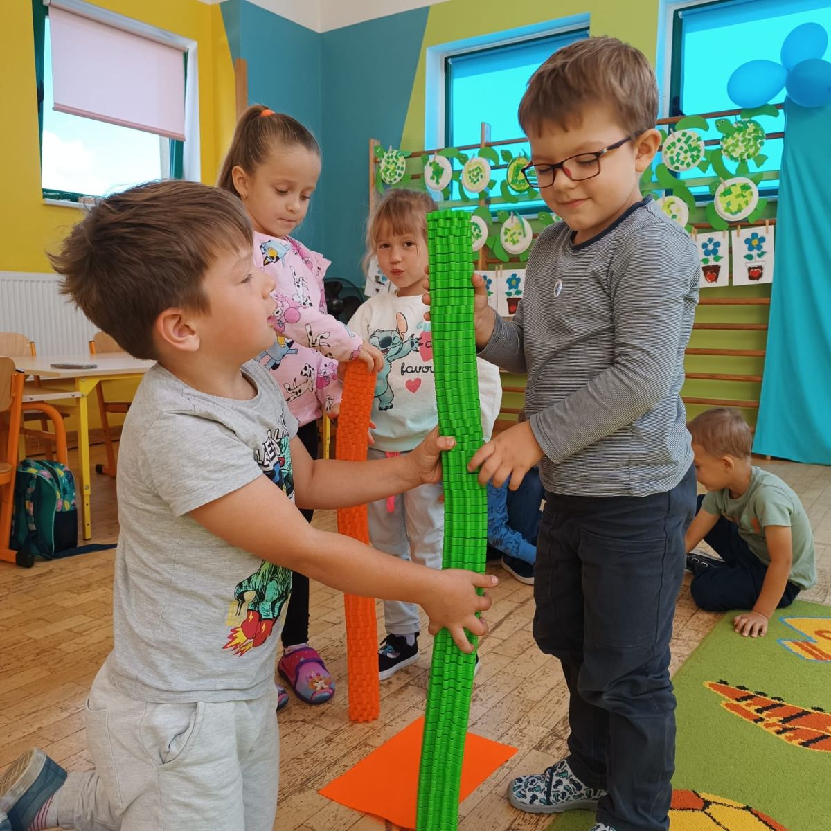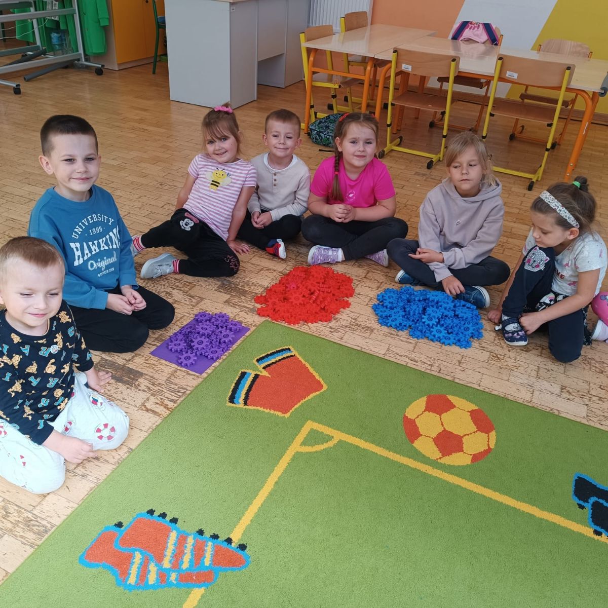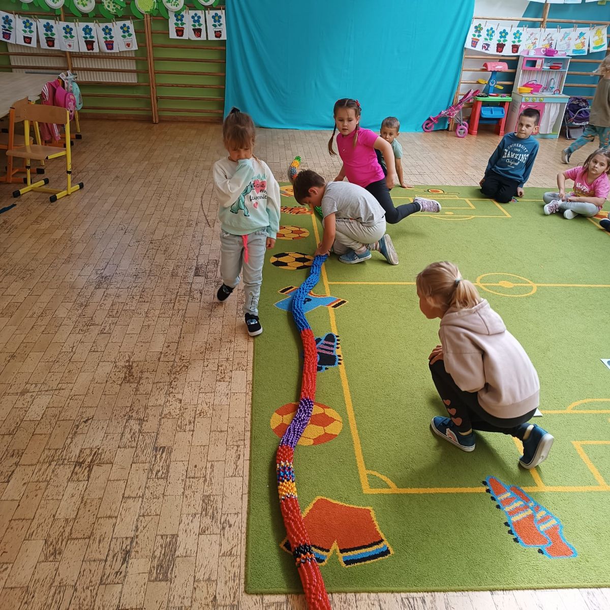 Grupa zrealizowała pierwsze zadanie - klasyfikowanie. Umiejętność klasyfikowania, czyli porządkowania przedmiotów według określonych cech, to jedna z podstawowych kompetencji poznawczych rozwijanych w wieku przedszkolnym. Stanowi fundament logicznego myślenia, a także przygotowuje dzieci do nauki matematyki, języka oraz rozumienia otaczającego świata.