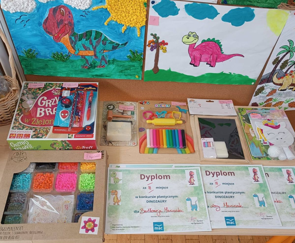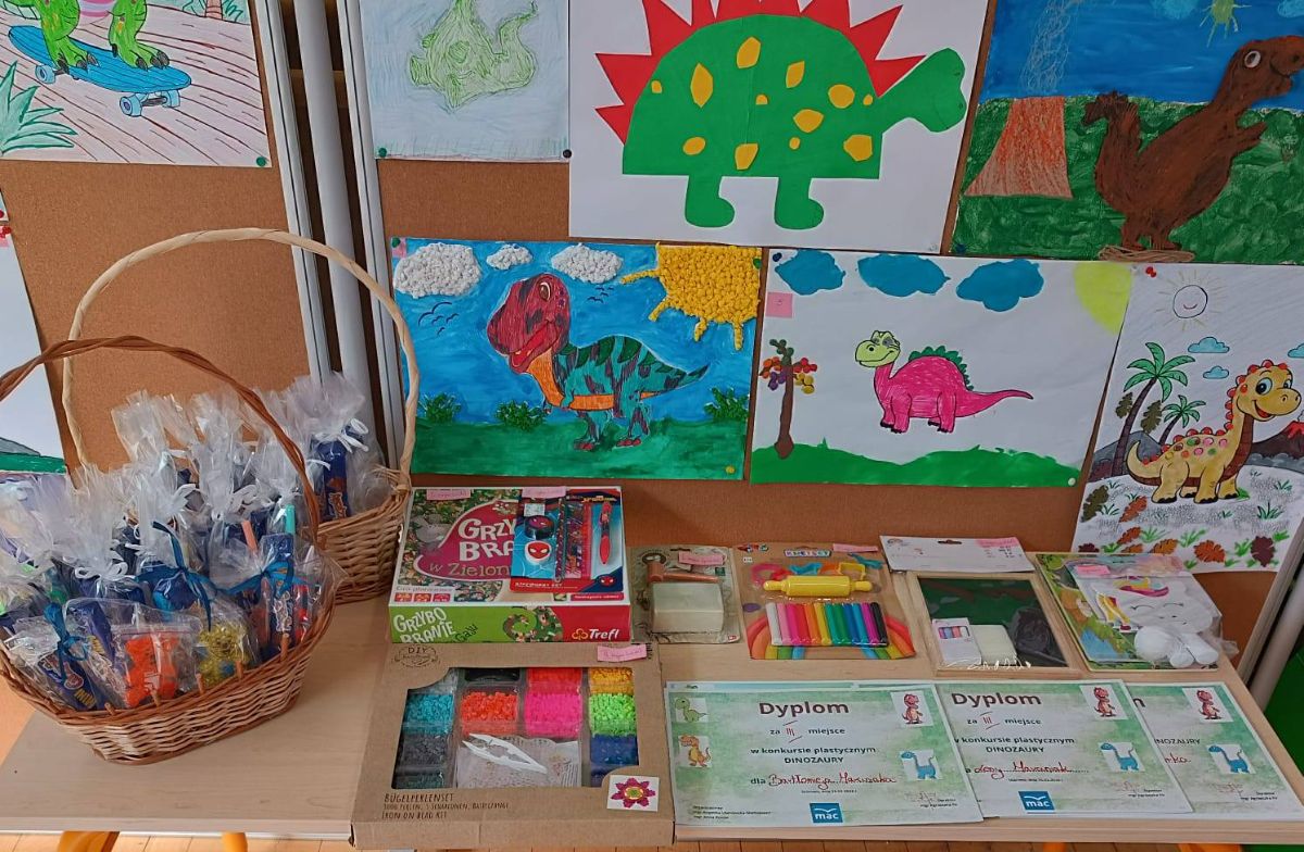 Rozstrzygnięto konkurs plastyczny pt. „Dinozaury”, który został przeprowadzony w dwóch kategoriach wiekowych: przedszkole oraz klasy I–III.