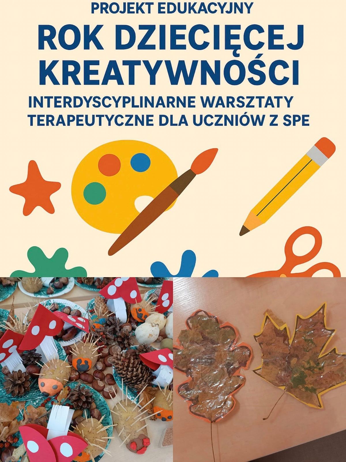 Za nami pierwsze warsztaty realizowane w oddziałach przedszkolnych, klasach I–III oraz dla uczniów objętych wsparciem psychologiczno-pedagogicznym w ramach ogólnopolskiego projektu edukacyjnego „Rok Dziecięcej Kreatywności – interdyscyplinarne warsztaty terapeutyczne dla uczniów z SPE”.